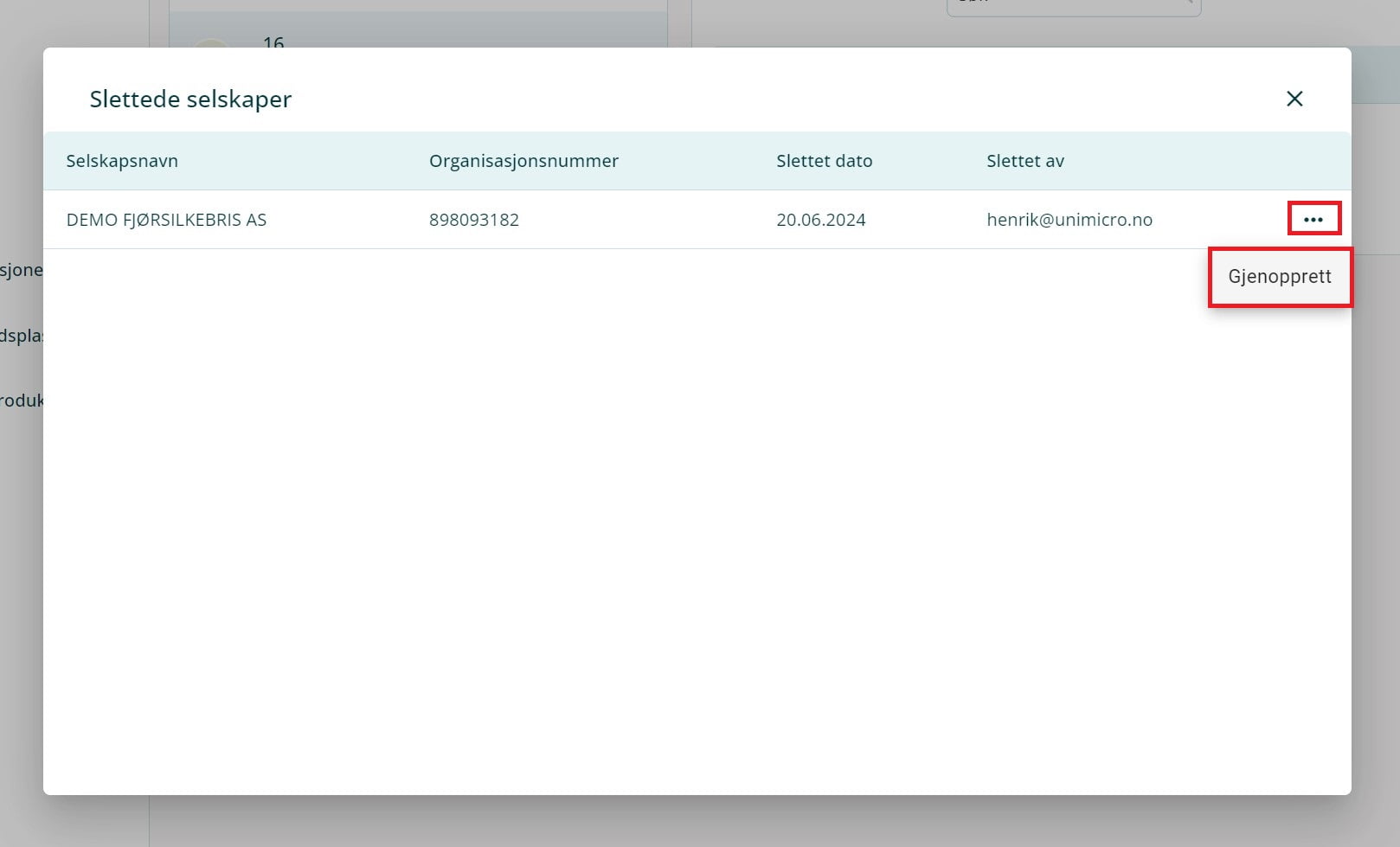 Det er mulig å gjenopprette et slettet selskapet i inntil 7 dager etter at det er slettet.