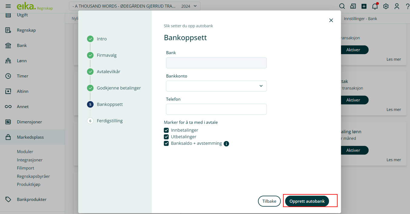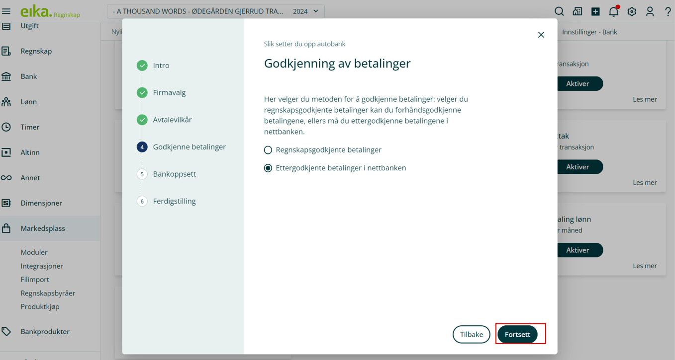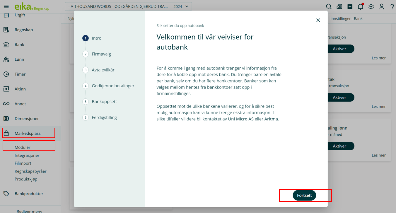 1. Gå til Markedsplass i venstremenyen og velg Moduler. Klikk på Aktiver under Autobank.