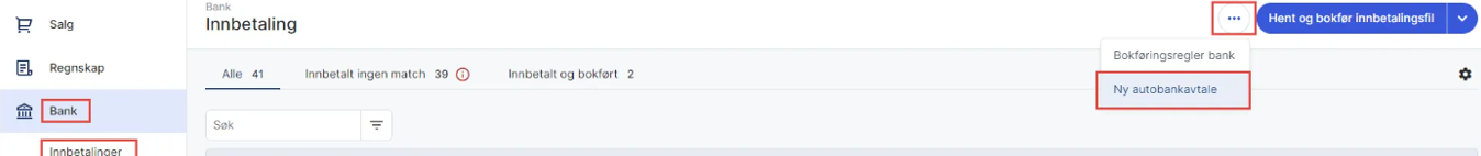 2. Gå til de tre kulepunktene (⋯) og velg Ny autobankavtale.