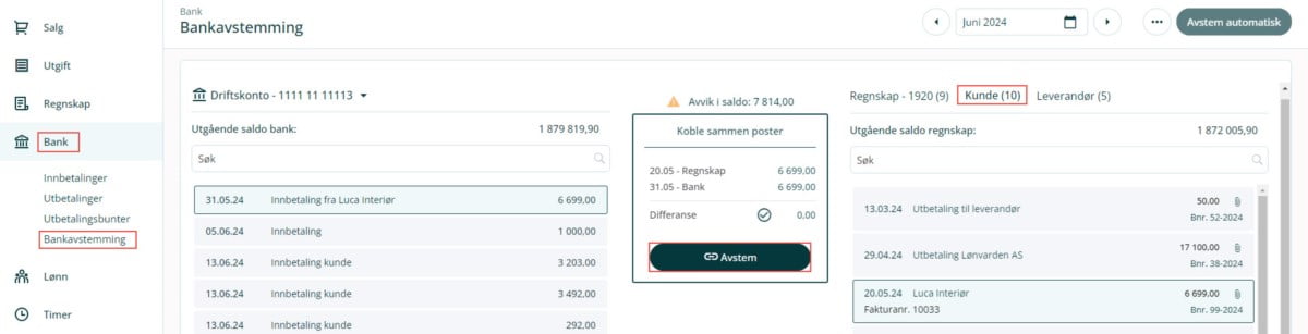 Slik avstemmer du bankpost mot kunde eller leverandør