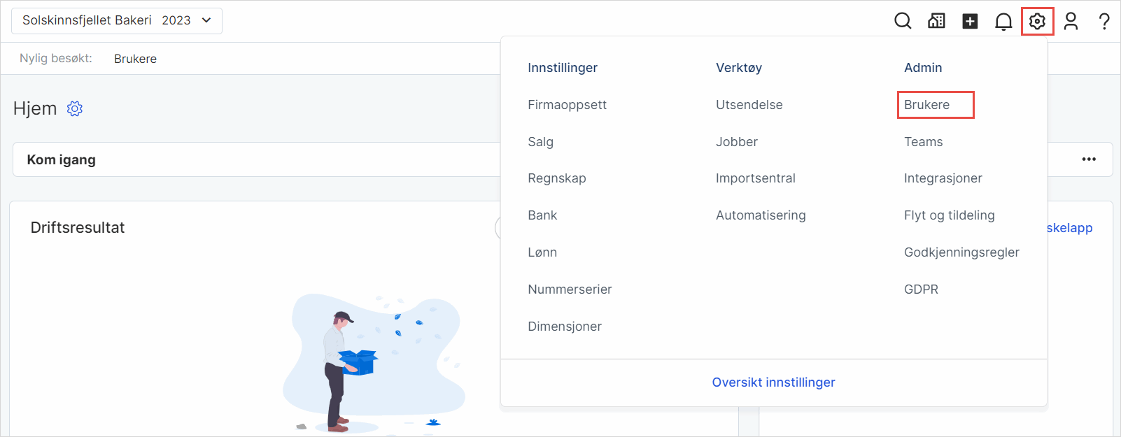 1. Gå til Innstillinger ⚙ i toppmenyen og velg Brukere.