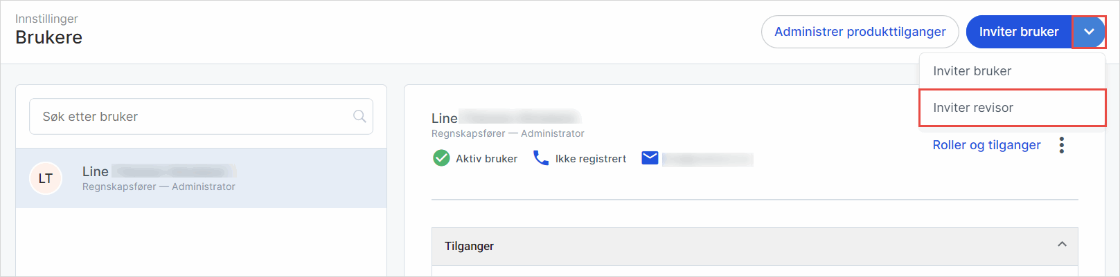 2. Klikk på pilen til høyre ▼ for knappen Inviter bruker.
