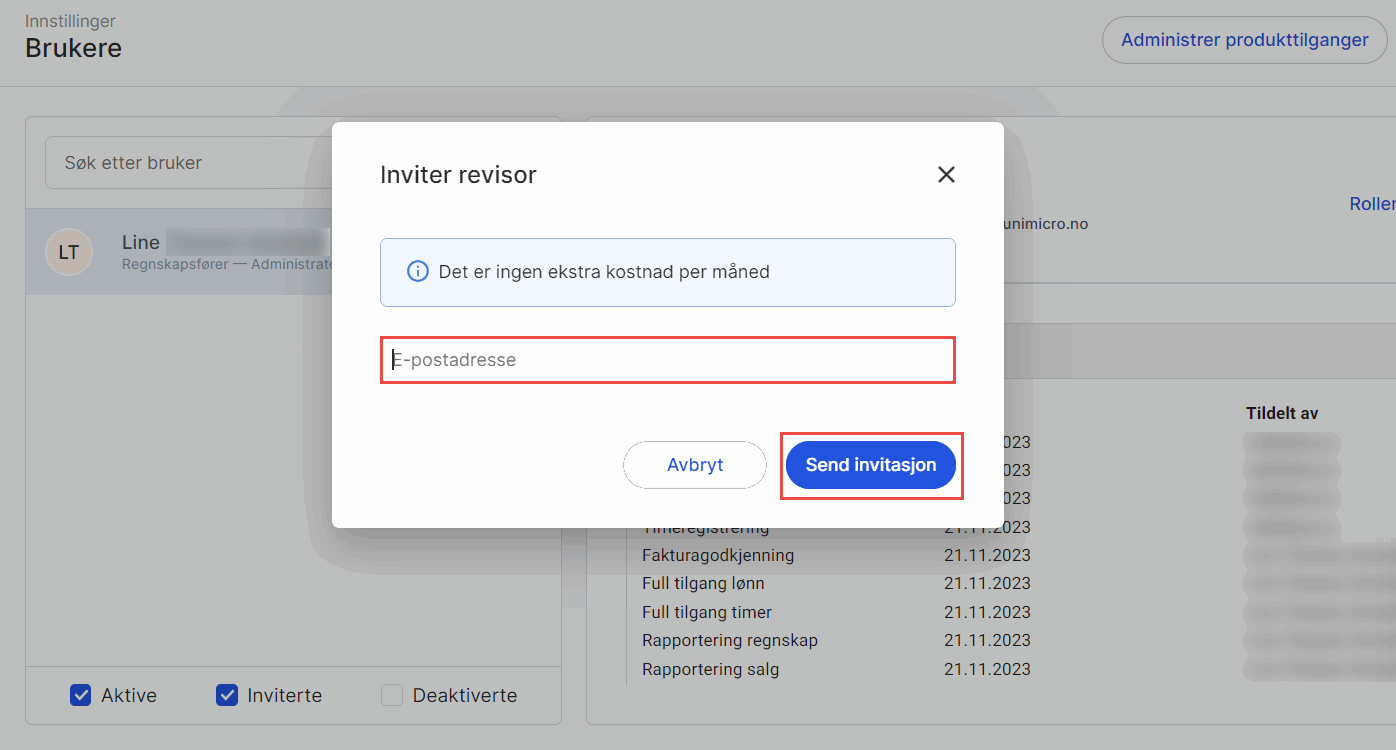 4. Legg inn revisors e-postadresse og Send invitasjon.