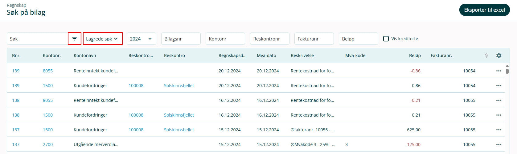 2. Hvis du ønsker å finne frem en tidligere lagret filtrering, klikker du på Lagrede søk.