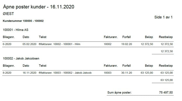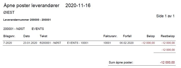 Summen av åpne poster kunder og –leverandører skal være lik summen du registrerte på kontoene 1500 og 2400 på forrige side