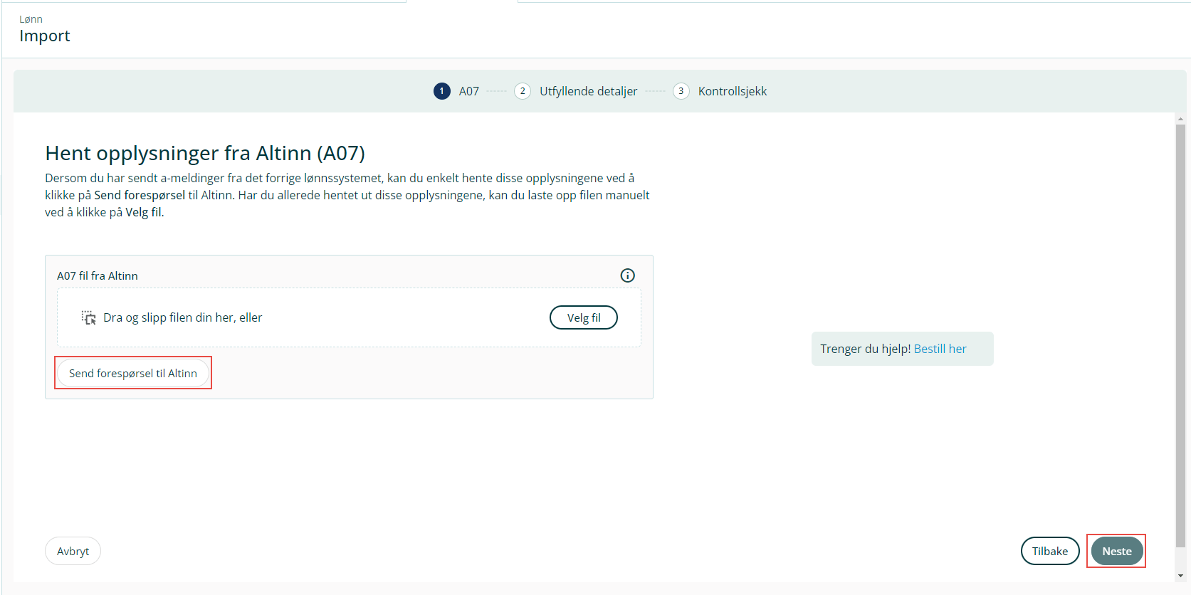 - Permisjoner importeres via Altinn (A07). Dette krever at oppsett mot Altinn er satt opp på forhånd eller at du har en A07 klar til opplastning.