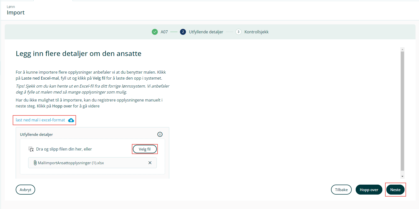 Tips! Sjekk om du kan hente ut en Excel-fil fra ditt gamle lønnssystem før du starter.