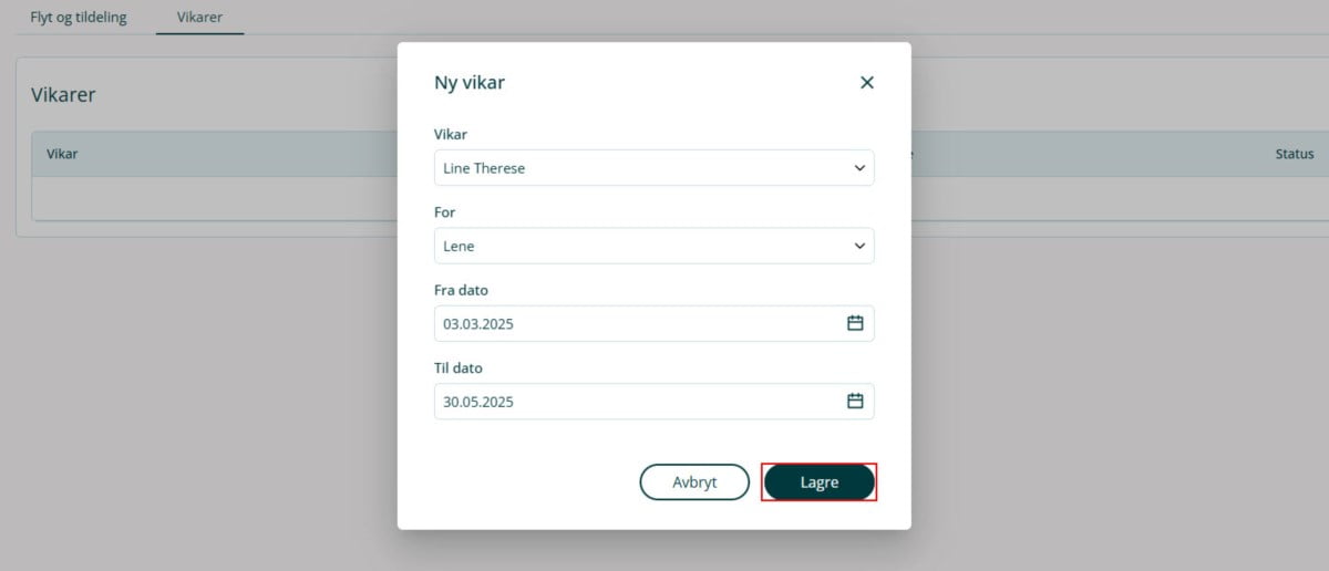 3. Klikk på Registrer vikar.