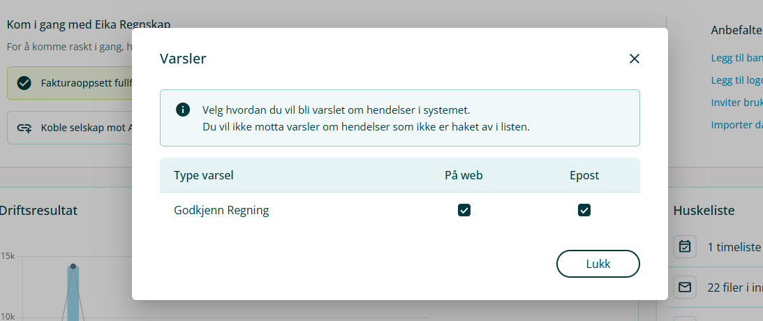2. Sett hake ☑ ved ønskede varslingsmåter.