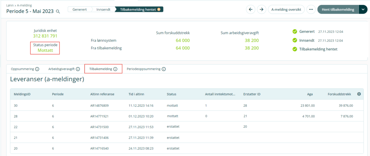 Du må hente tilbakemelding enten det er levert en full (standard) a-melding, erstatningsmelding, kun arbeidsforhold, tilleggsmelding eller nullstilling fra regnskapssystemet.