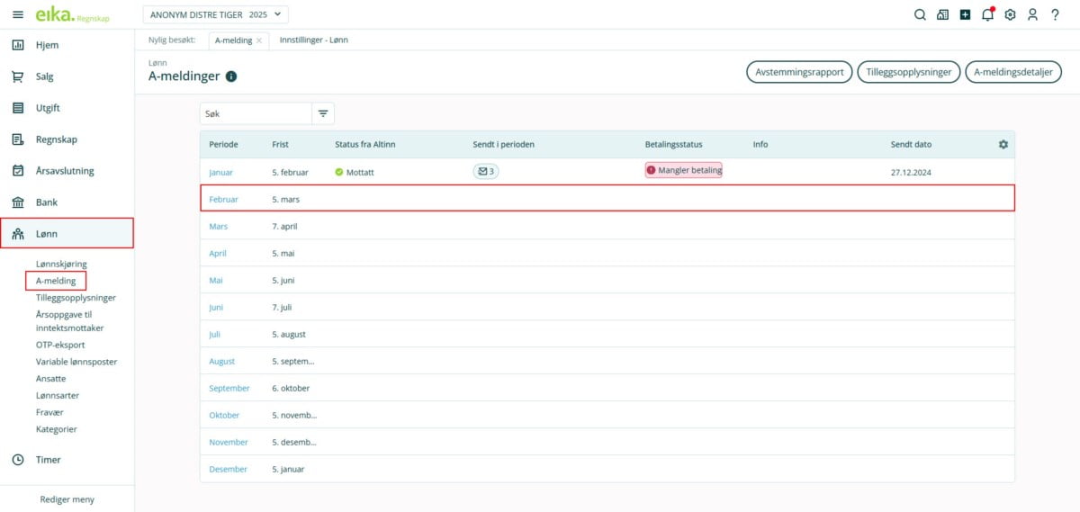 1. Gå til Lønn i venstremenyen og velg A-melding.