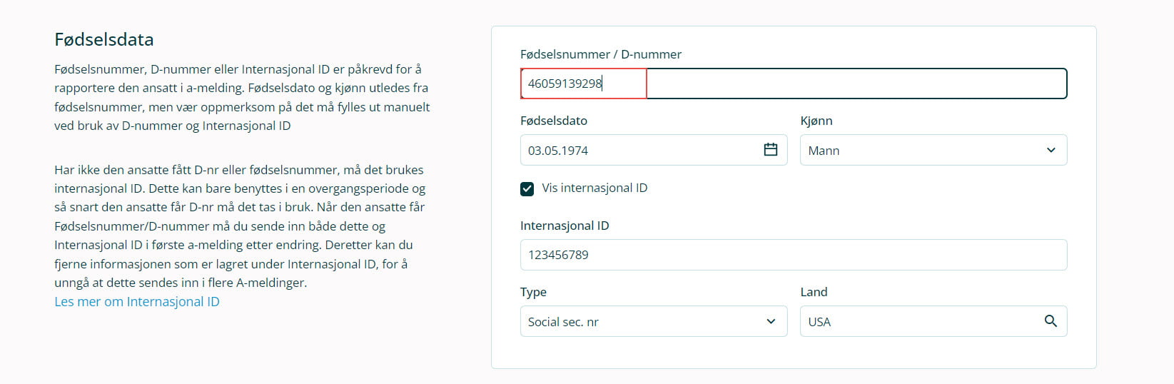 Registrer alternative fødselsdata