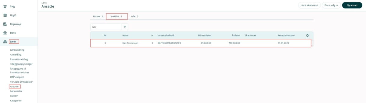 1. Gå til Lønn i venstremenyen og velg Ansatte