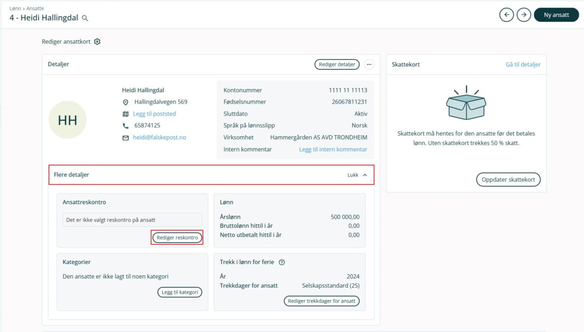 NB! Ansattreskontro må være aktivert i lønnsinnstillinger før du kan ta i bruk Ansattreskontro.