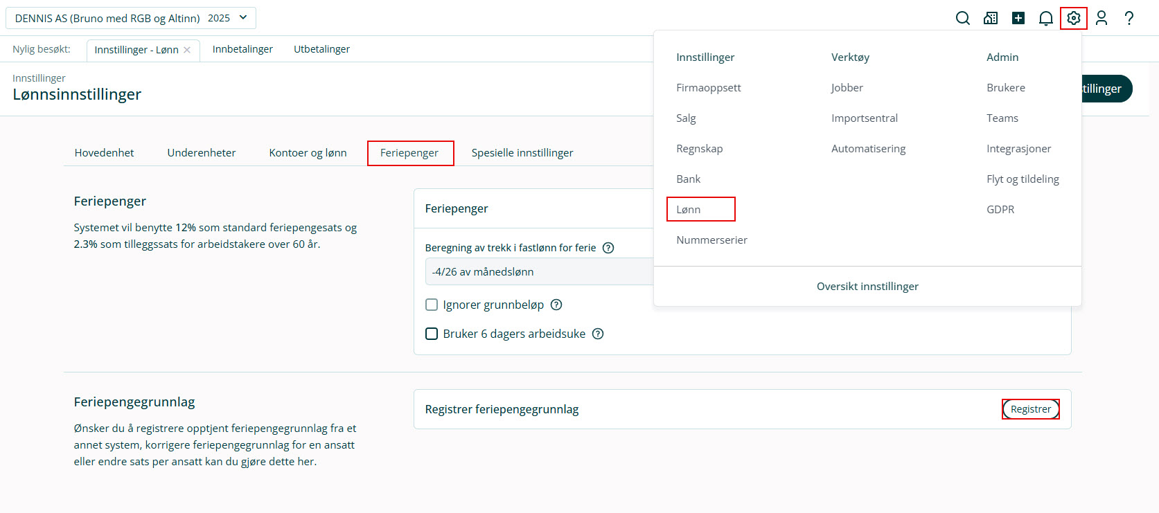 1. Gå til Innstillinger i toppmenyen og velg Lønn.