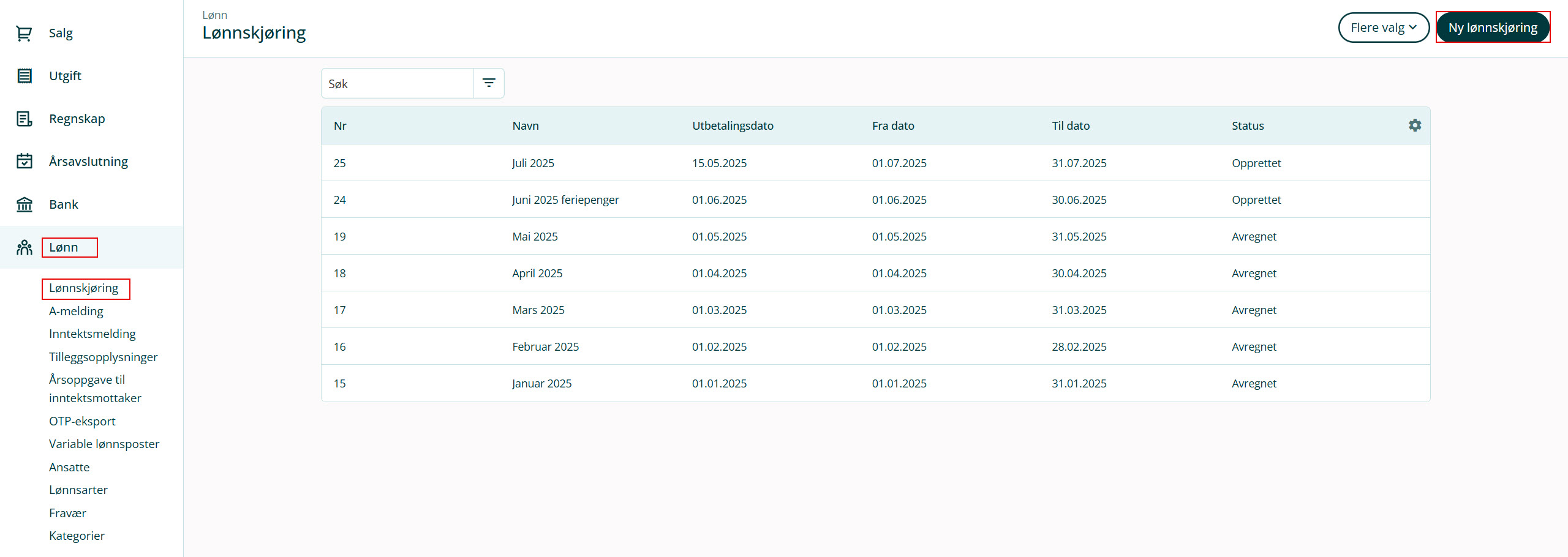 1. Gå til Lønn i venstremenyen og klikk på Lønnsavregning.