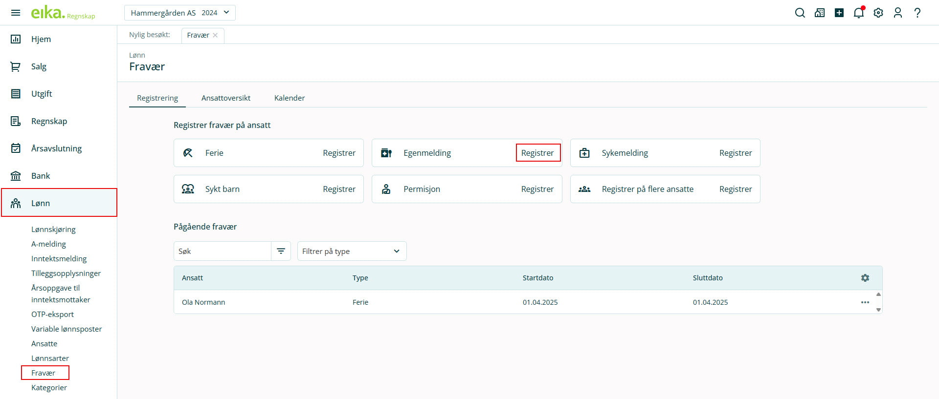 1. Gå til Lønn i venstremenyen og velg Fravær