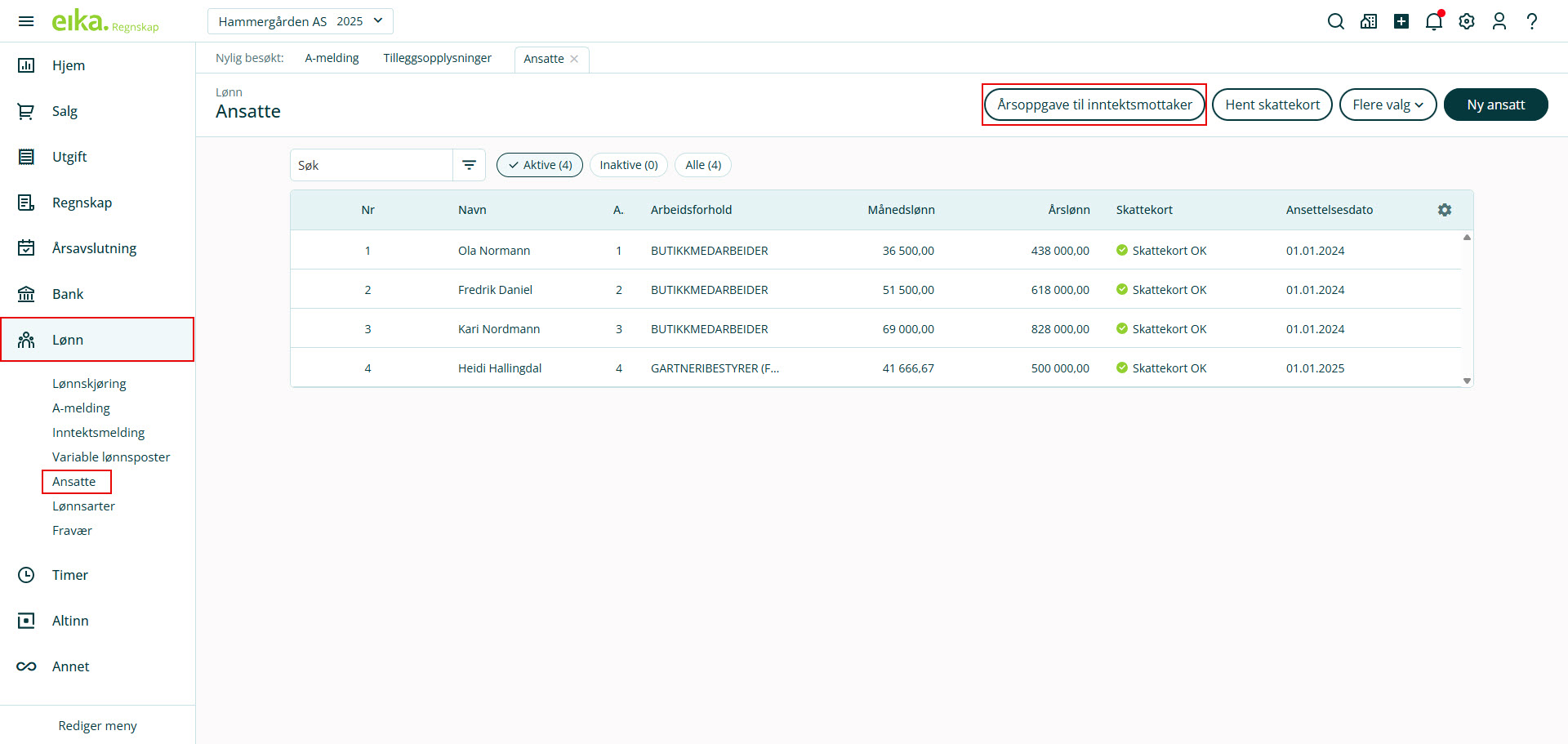 1. Gå til Lønn i venstremenyen og velg Ansatte.