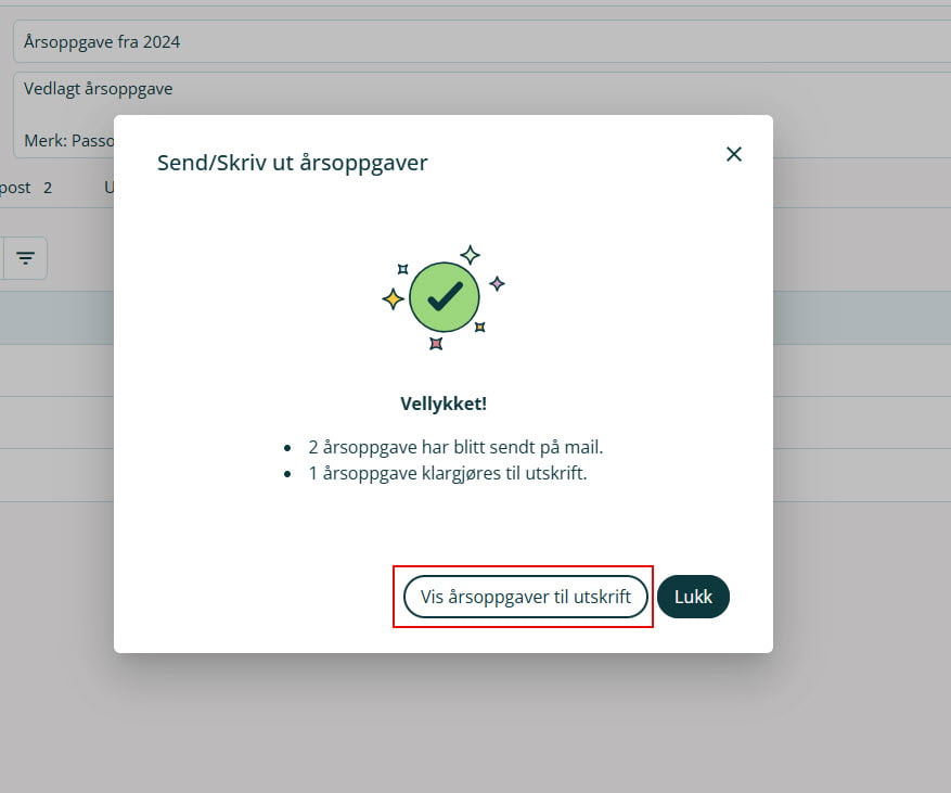 Klikk da på Vis årsoppgaver til utskrift for å behandle disse.