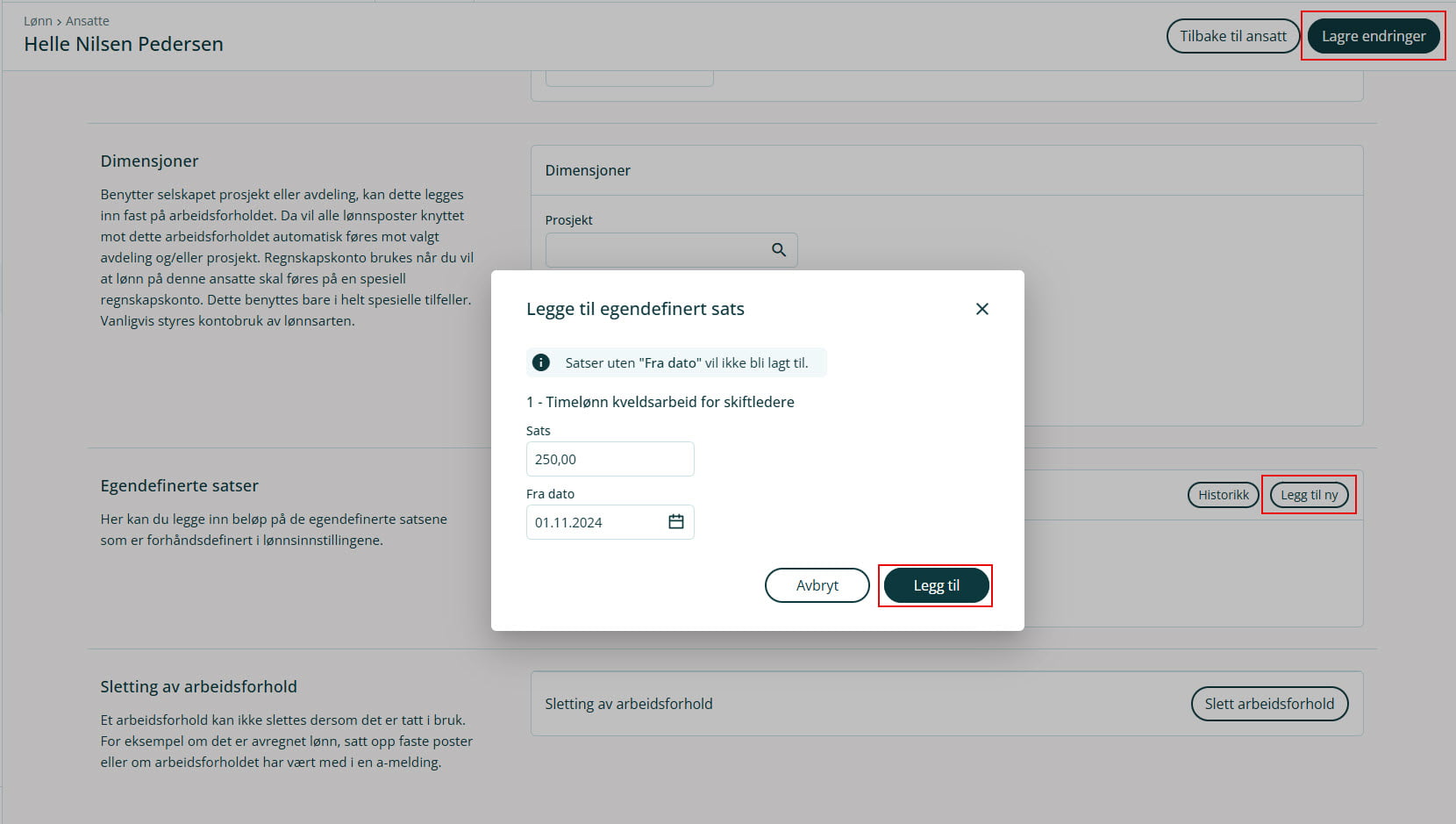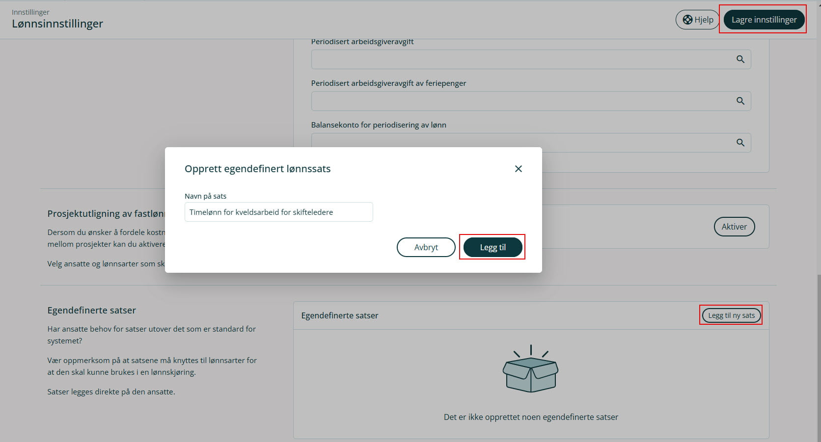 Opprette egendefinerte lønnssatser i lønnsinnstillinger