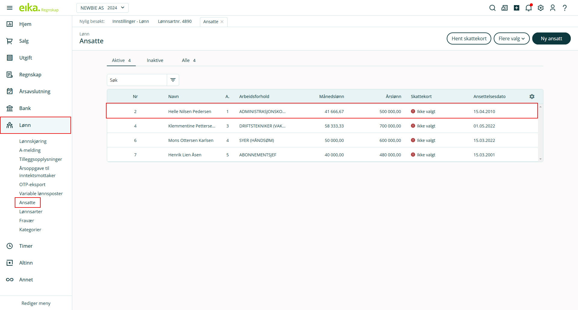 1. Gå til Lønn i venstremenyen og velg Ansatte.