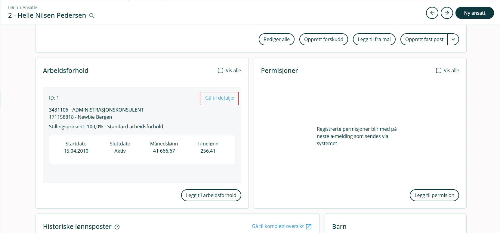 2. Velg den ansatte du ønsker å legge inn en egendefinert lønnssats på.