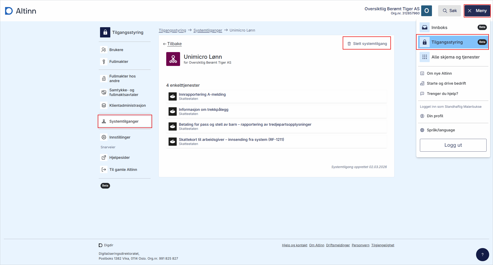 6. Klikk på Slett Systemtilgang.