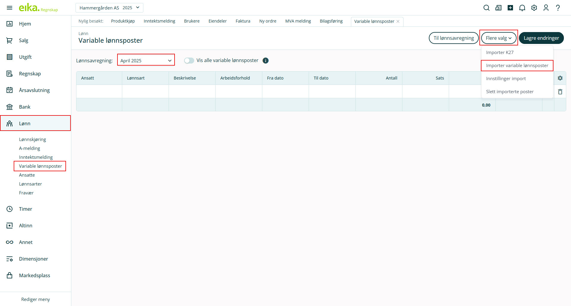 1. Gå til Lønn i venstremenyen og velg Variable lønnsposter.