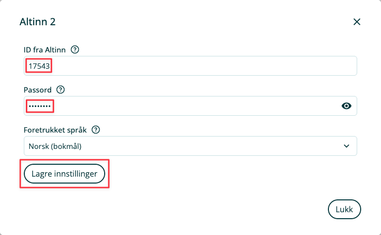 7. Legg inn ID fra Altinn og Passord.