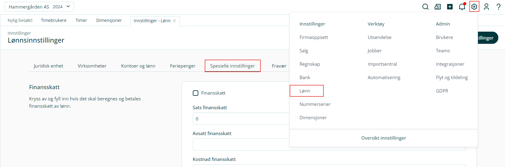 1. Gå til Innstillinger i toppmenyen og velg Lønn.