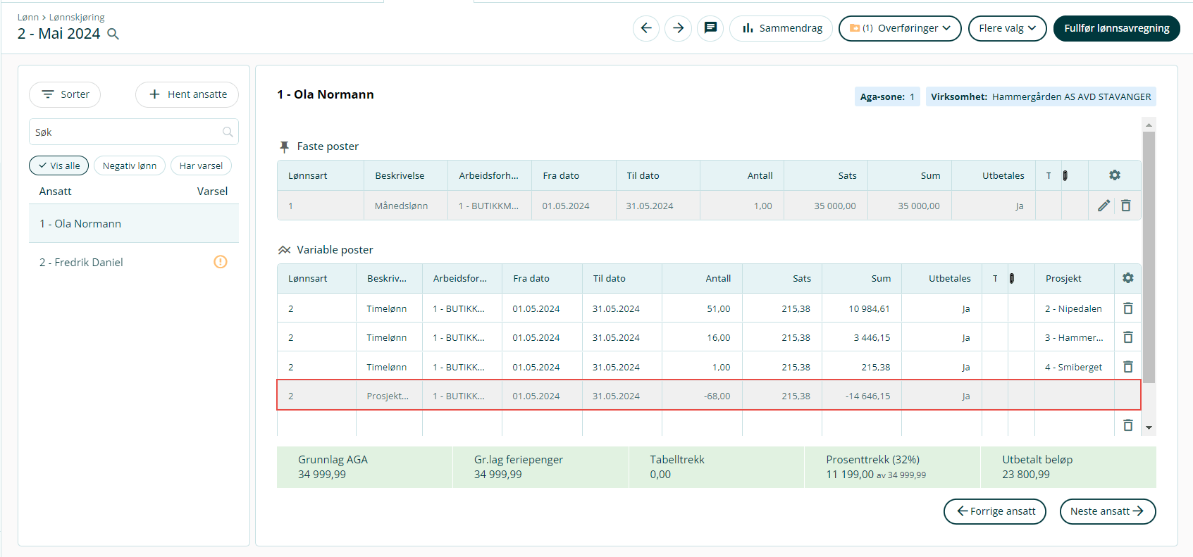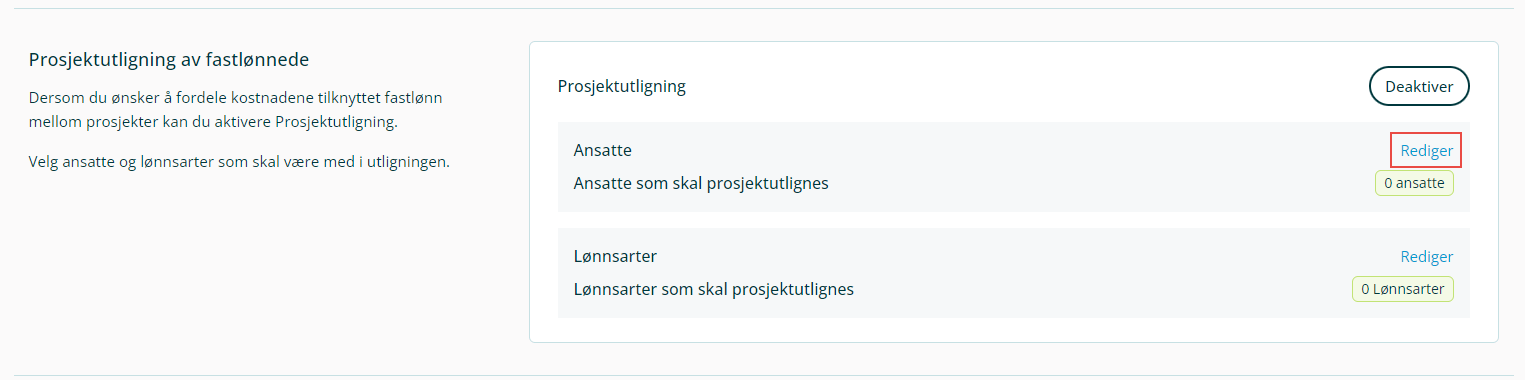 Her kan du legge inn de ansatte du ønsker å prosjektutligne fastlønn på.