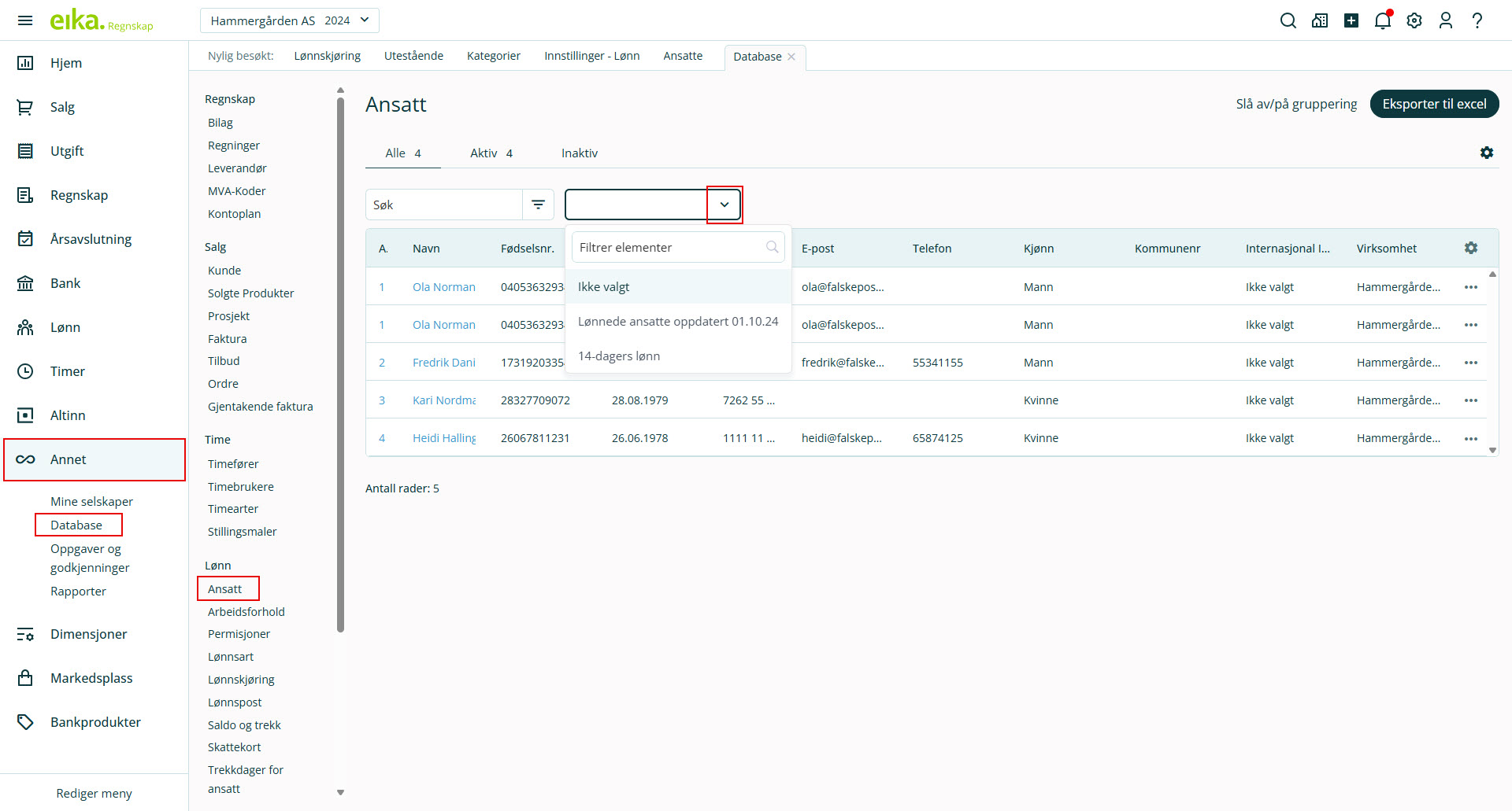 1. Gå til Lønn i venstremenyen og velg Ansatte.