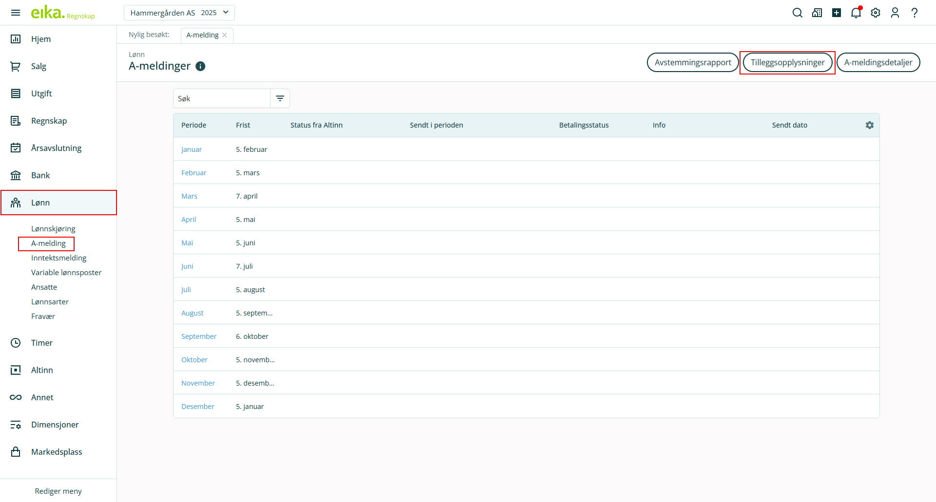1. Gå til A-melding i venstremenyen og velg Tilleggsopplysninger.