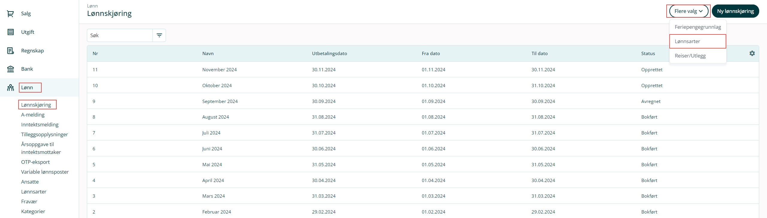 1. Gå til Lønn i venstremenyen og velg Lønnsarter. Klikk på Ny lønnsart.