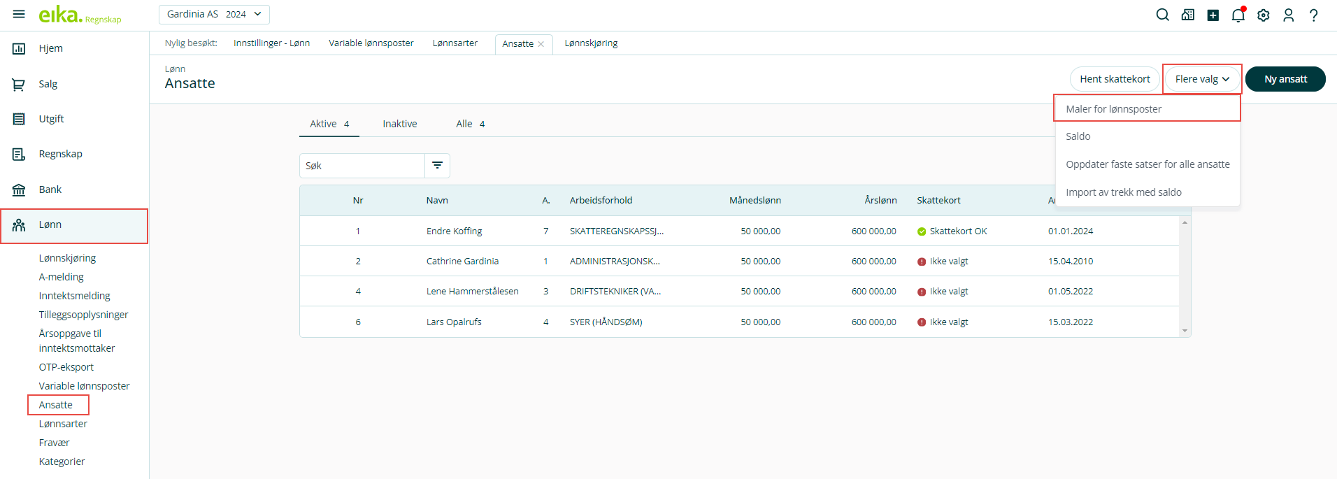 1. Klikk på Lønn i venstremenyen og velg Ansatte