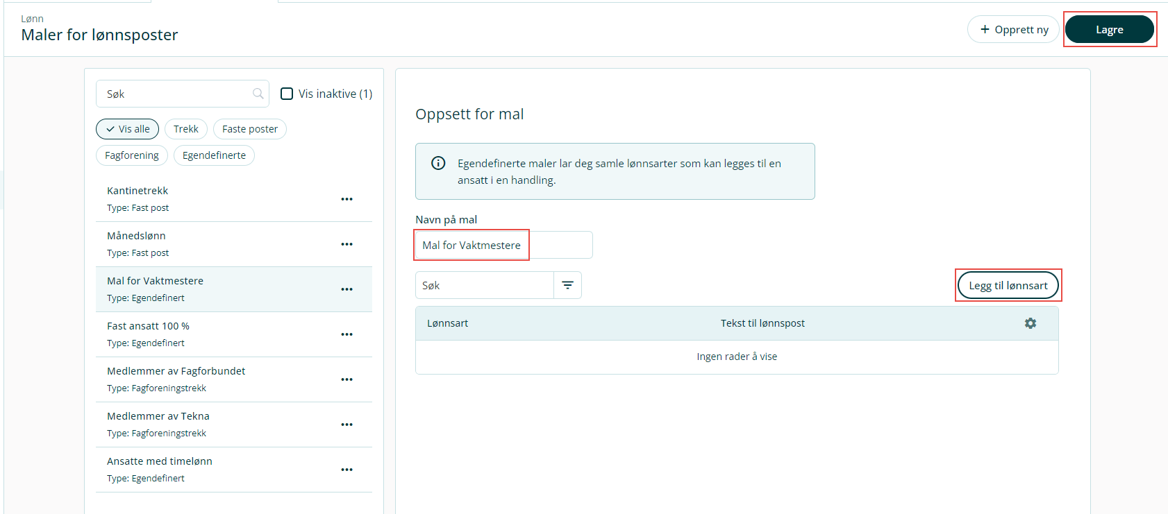 5. Skriv navn på malen, dette vil hjelpe deg å finne malen når du skal legge den inn på ansatte senere.