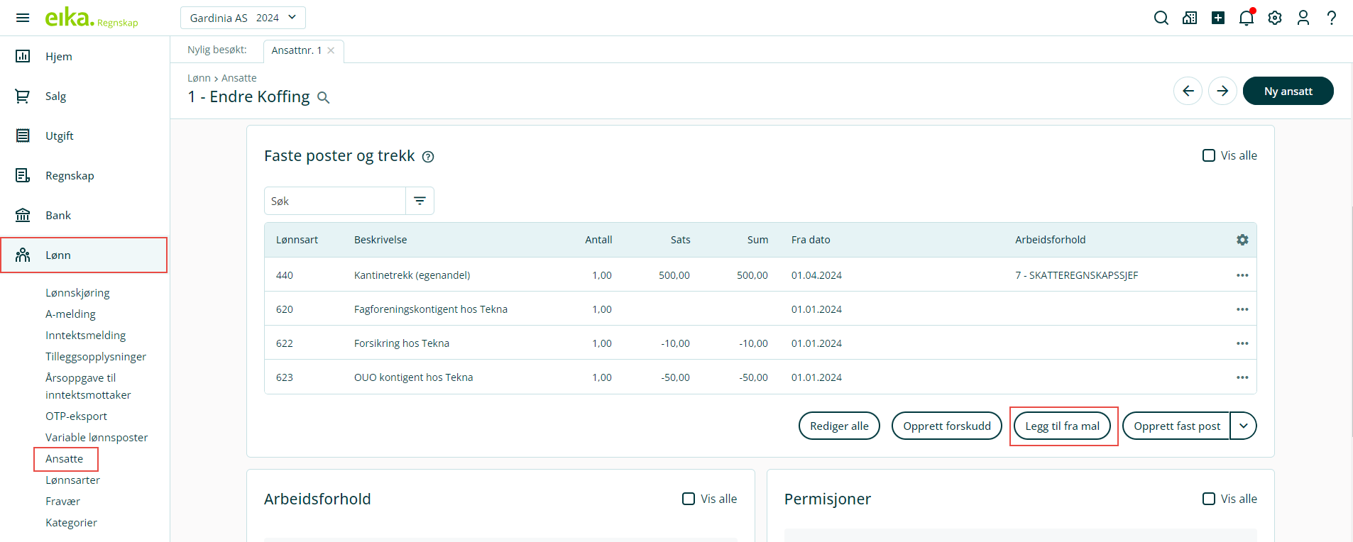 2. Finn den ansatte det gjelder og klikk på Legg til fra mal