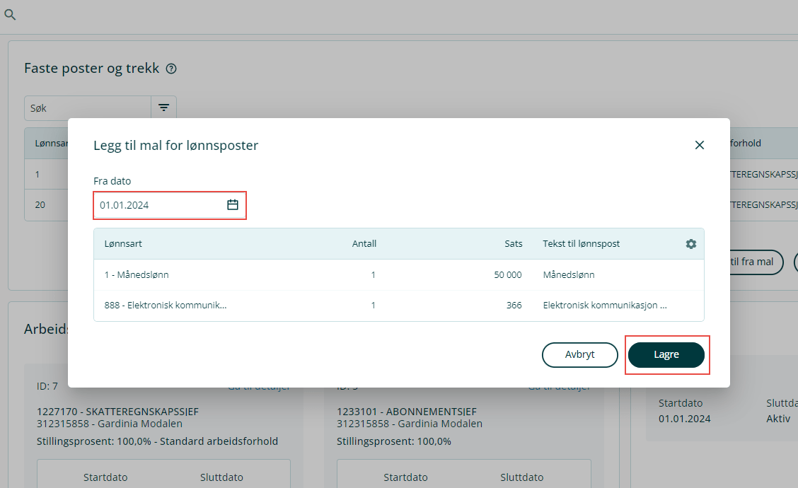 5. Skriv fra dato. Denne datoen vil være startdato for de faste postene du ser i tabellen.