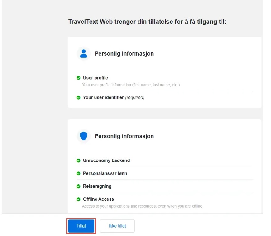 5. Klikk på Tillat