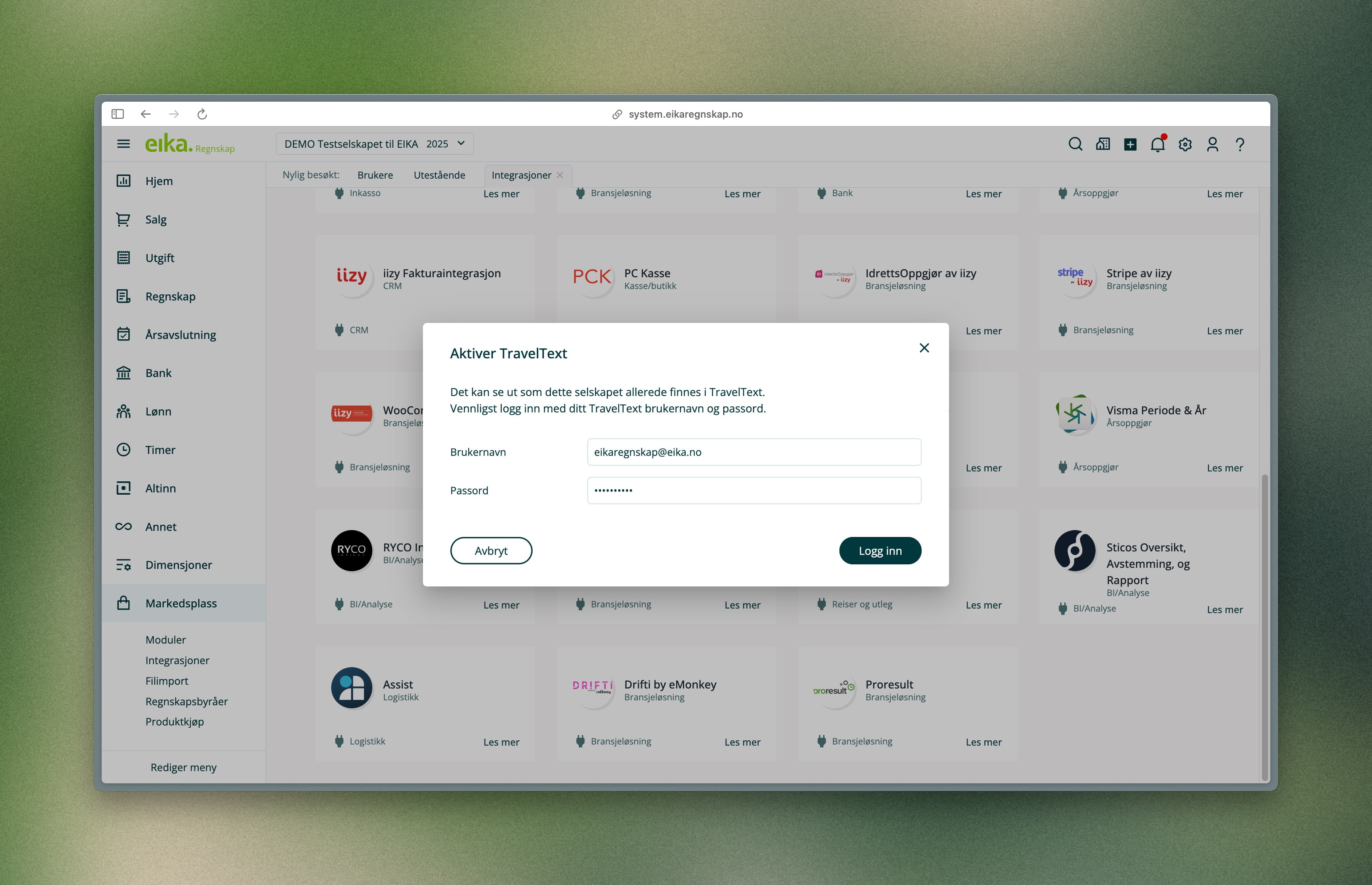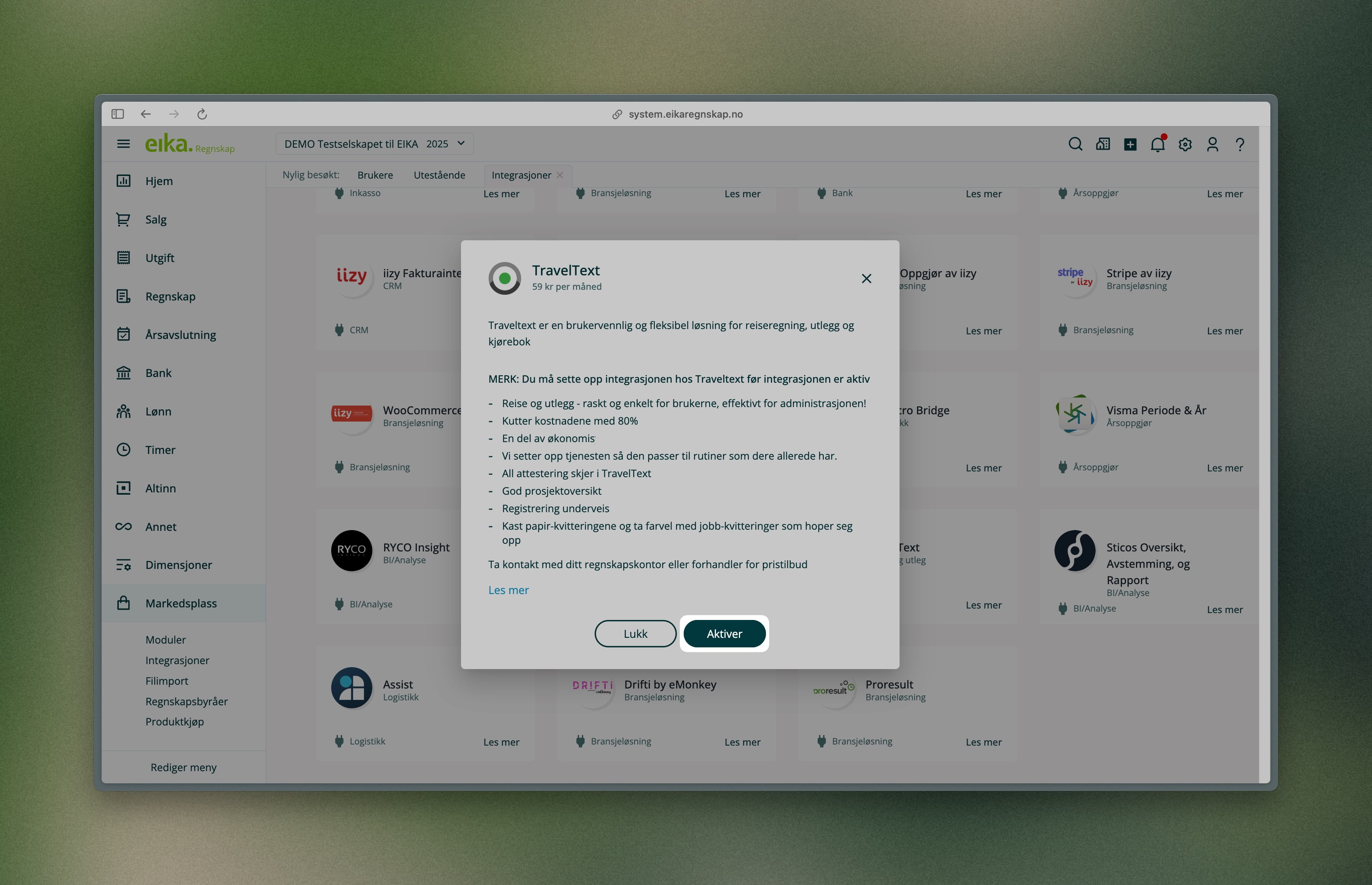 Slik aktiverer du Traveltext-integrasjonen i Eika Regnskap