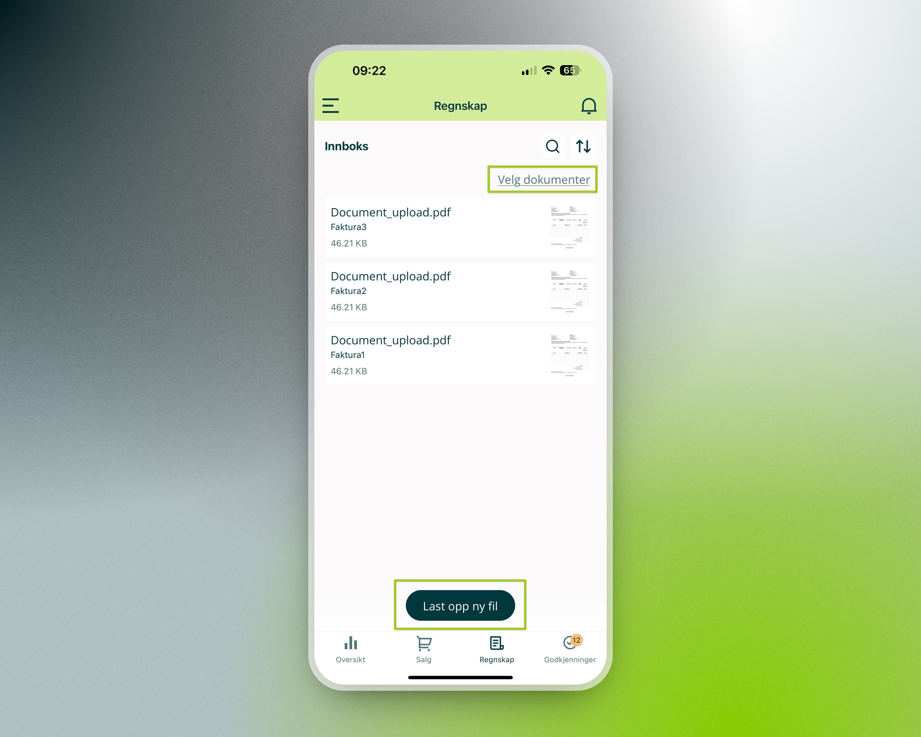 2. Velg faktura blant dokumentene i innboksen, eller Last opp ny fil.