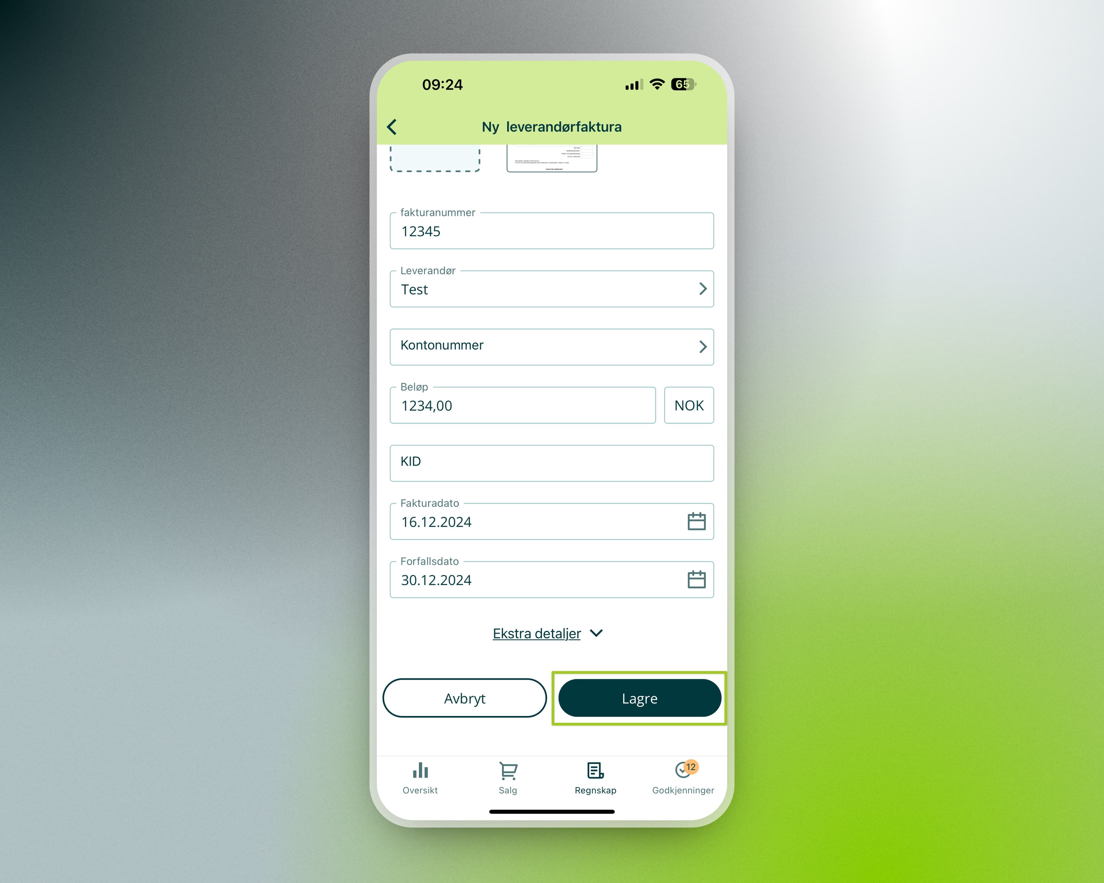 5. Trykk på Lagre (dette finner du under feltet Ekstra detaljer)