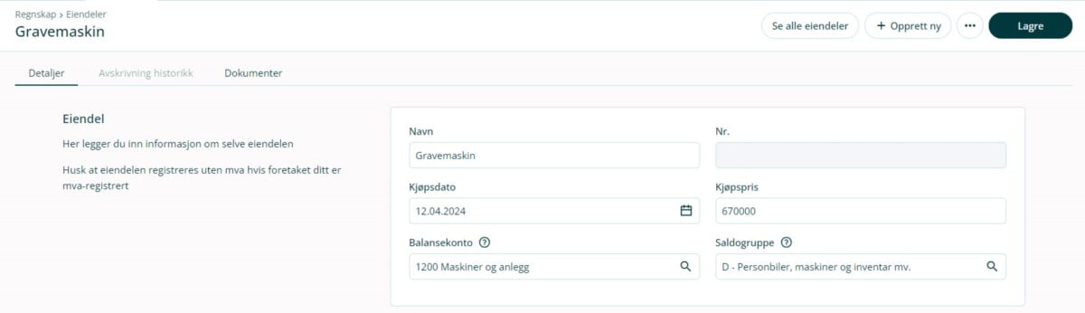 Slik registrerer du en ny eiendel