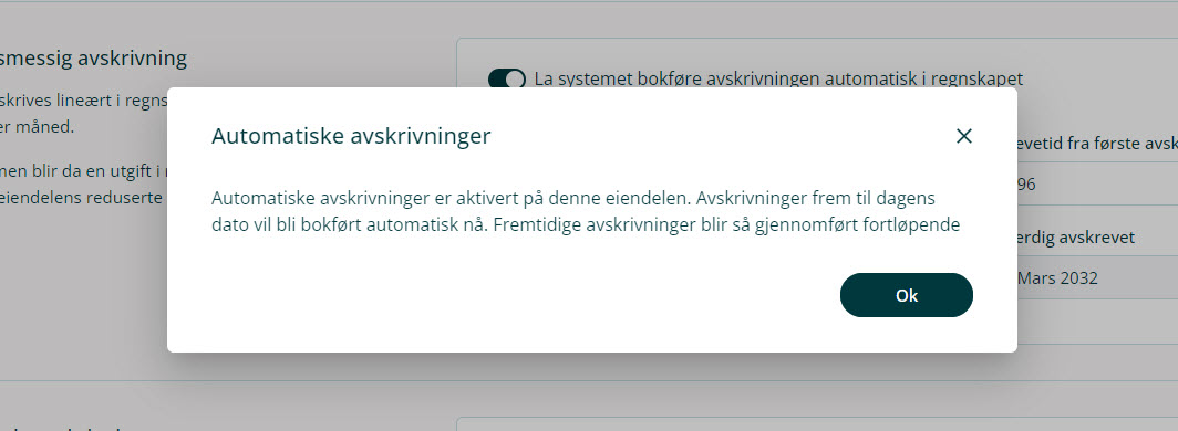 Hvis verdien til en av disse eiendelene har økt grunnet påkostninger som er gjort, kan dette registreres på eiendelen. Beløpet må da på forhånd være bokført mot tilhørende hovedbokskonto i regnskapet. Hvis påkostningen er bokført på en annen konto enn den aktuelle eiendelen, vil systemet automatisk flytte saldo for påkostning til eiendelens hovedbokskonto i regnskapet.