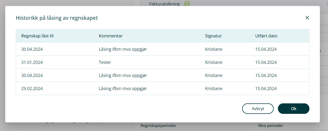Regnskapet kan låses til og med en periode på to måter: Når mva-melding er signert eller via regnskapsinnstillinger.