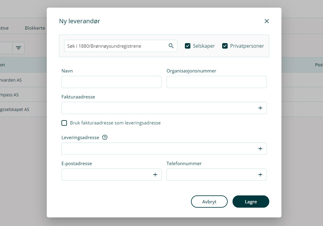 Slik oppretter du ny leverandør