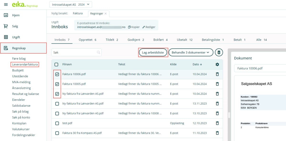 2. Marker en eller flere filer fra innboksen, og knappen Lag arbeidsliste vil bli synlig.