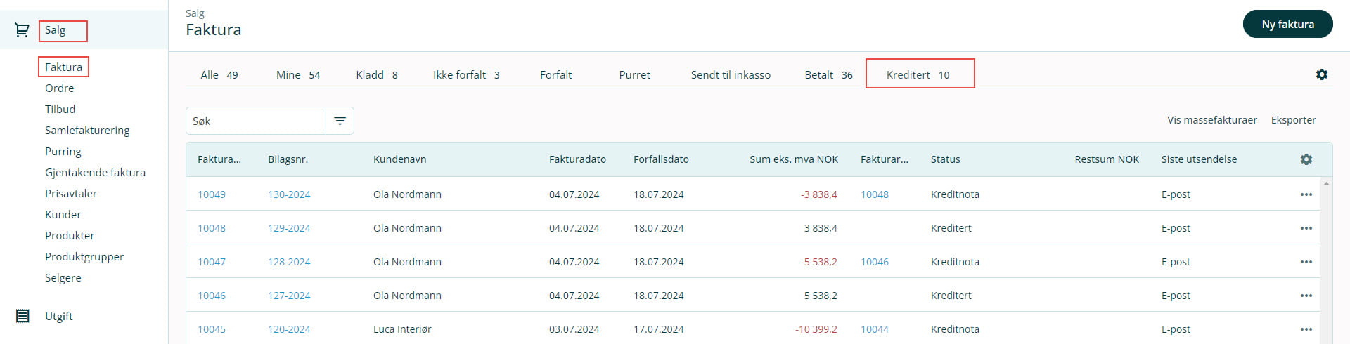 1. Gå til Salg i venstremenyen og velg Faktura.