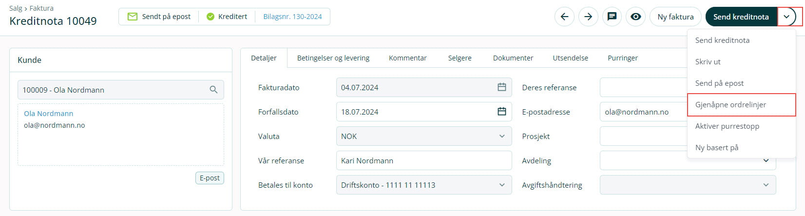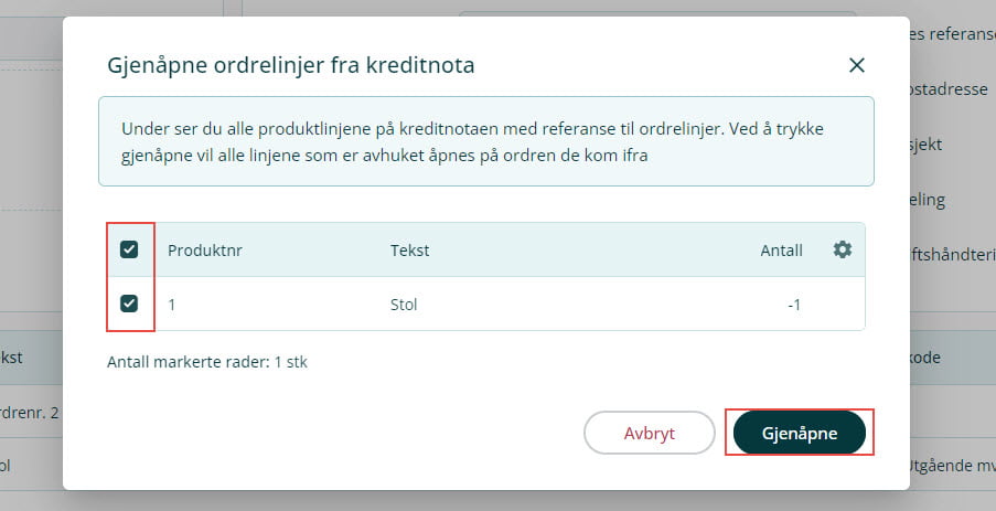 Slik gjenåpner du ordrelinjer på kreditert faktura