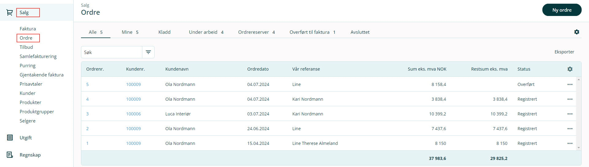 5. Gå til Salg i venstremenyen og velg Ordre.
